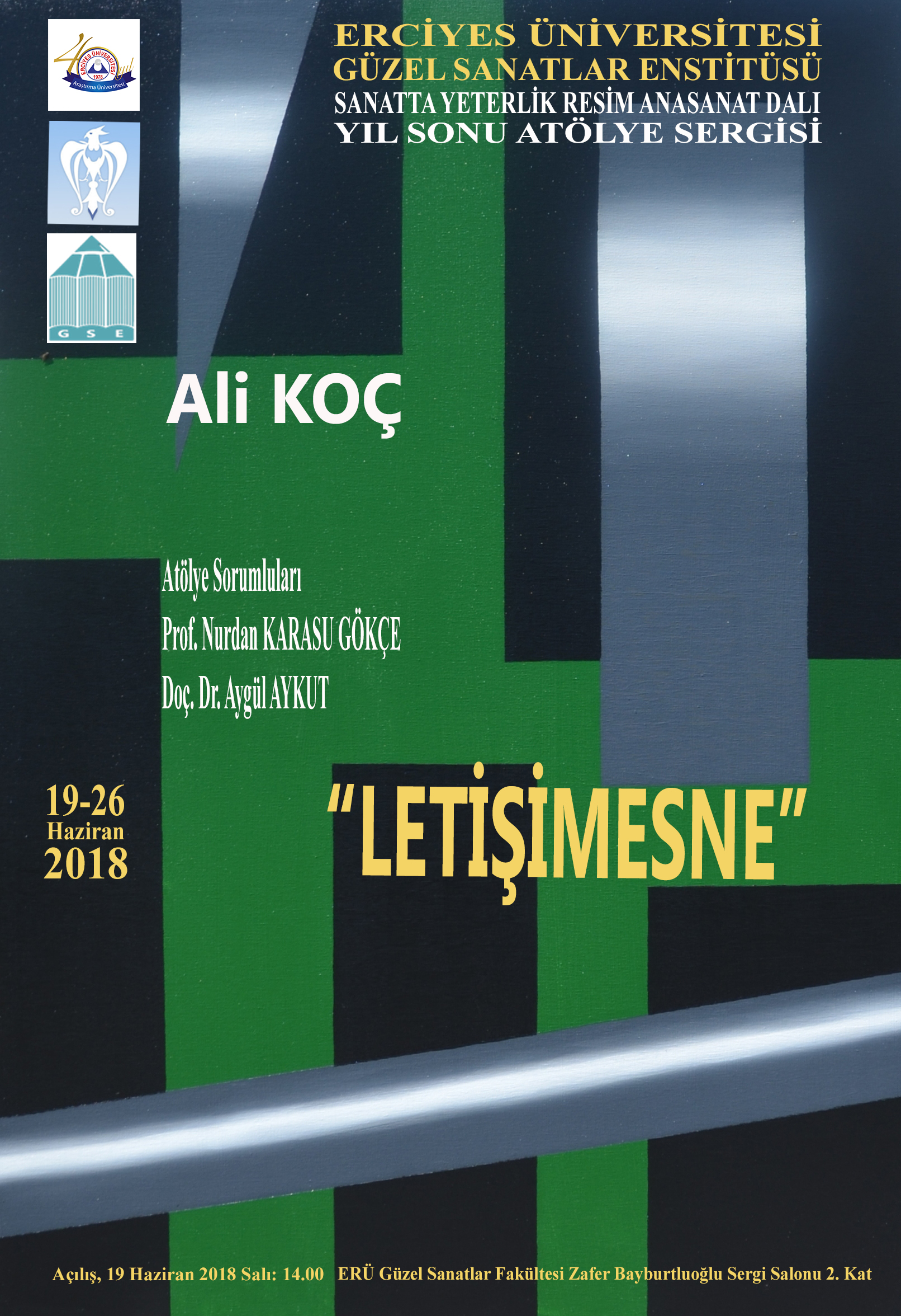 Erciyes Üniversitesi (ERÜ) Güzel Sanatlar Enstitüsünde Doktora yapmakta olan KSÜ Güzel Sanatlar Bölümü Başkanı Ali KOÇ tarafından, Sanatta Yeterlilik Resim Anasanat Dalında “LETİŞİMESNE” konulu sergi düzenlendi.